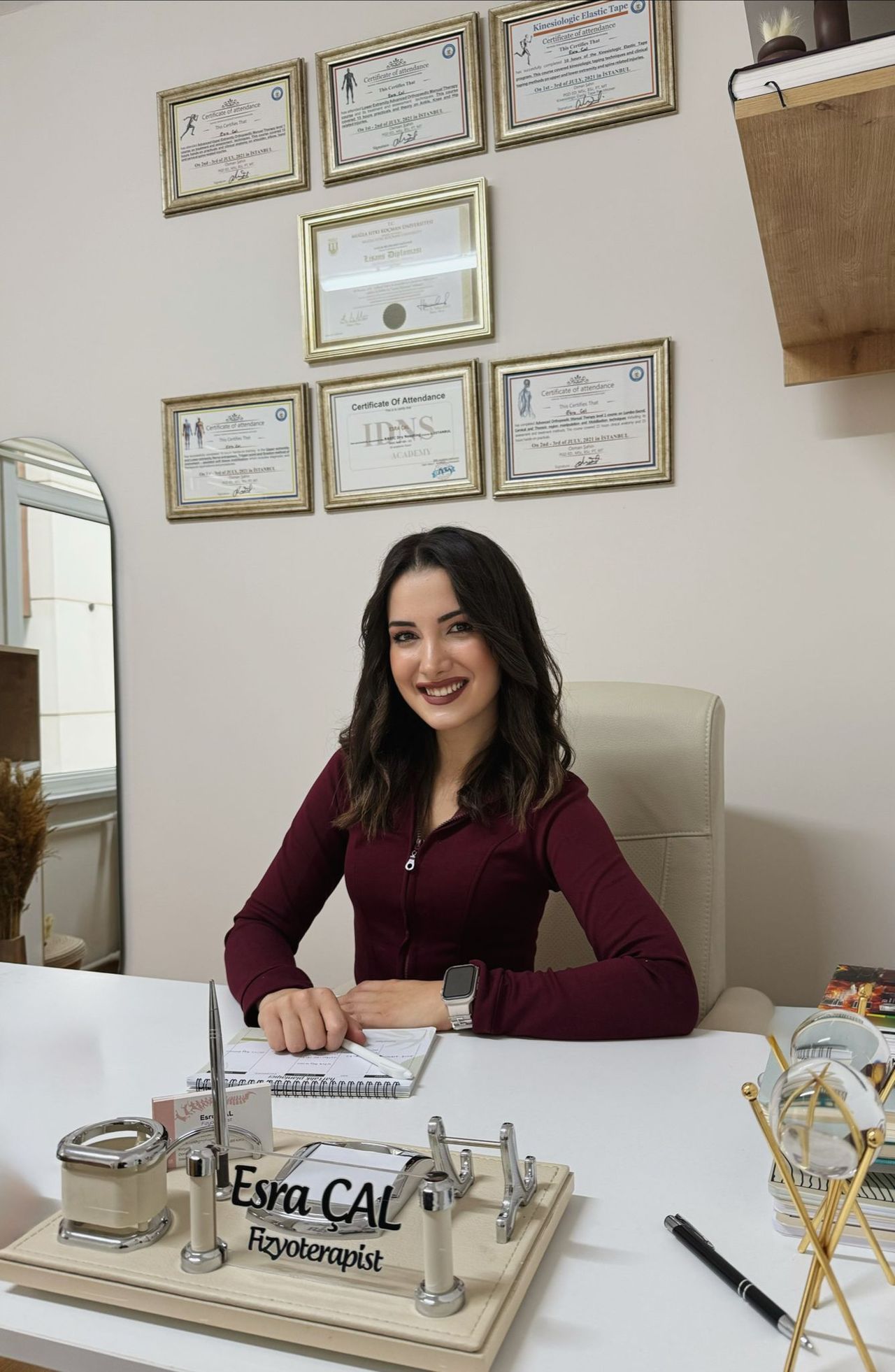 Fizyoterapist Esra Çal, kas-iskelet sistemi ağrıları ve omurga sağlığı üzerine çalışan bir fizyoterapisttir. Özellikle bel ve boyun ağrıları, postür bozuklukları ve hareket kısıtlılıklarının değerlendirilmesi ve egzersiz temelli rehabilitasyonu üzerine çalışmalarını sürdürmektedir.